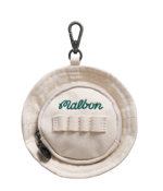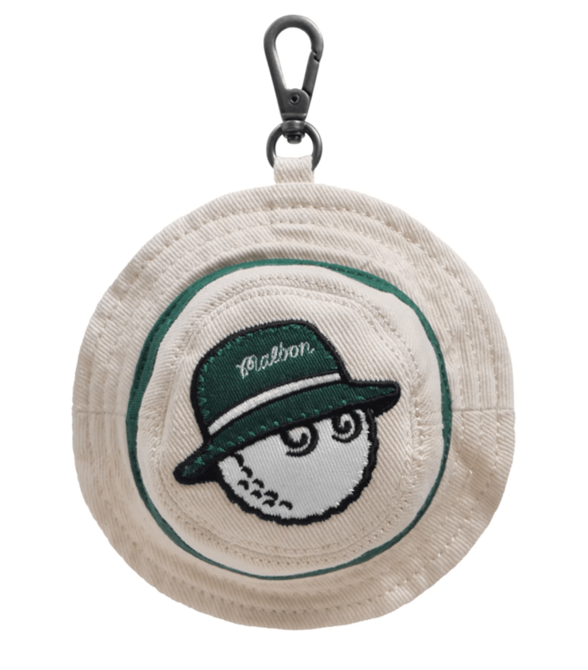 Introducing the Malbon Golf Preserve Collection Buckets Ball Case, uniquely designed in the shape of a Bucket Hat with a durable 100% cotton shell and a practical nylon-polyester lining. Featuring a Buckets logo on top, Malbon Script embroidery on the back, and equipped with a zippered pocket and four-slot tee holder, it also includes a metal clip for easy attachment to your golf bag, combining style and functionality on the course.
