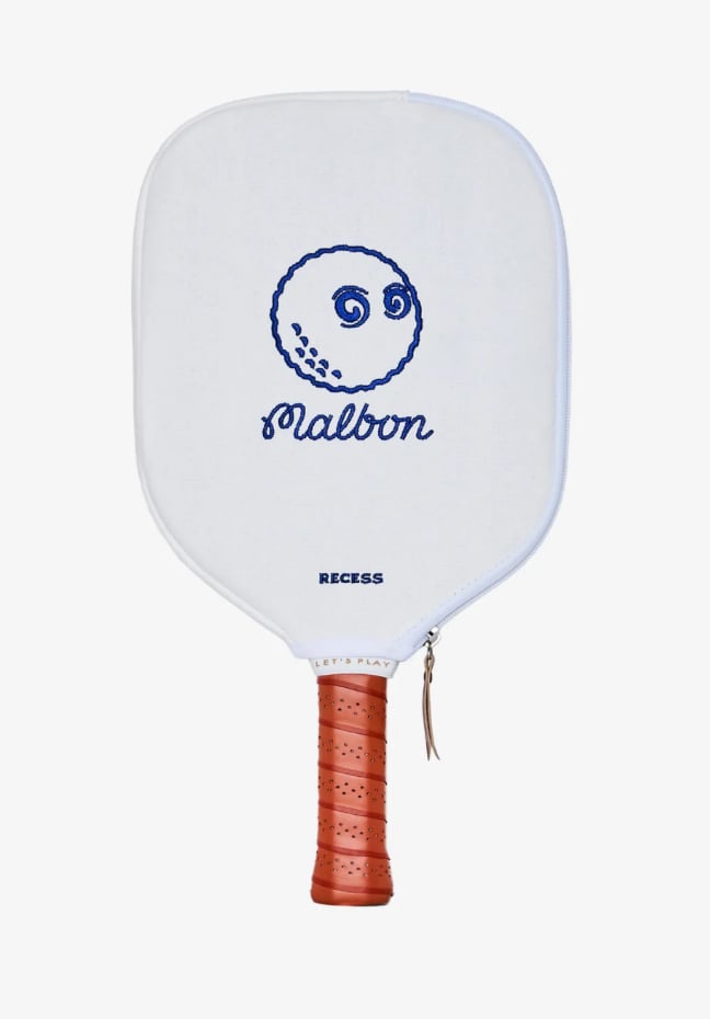 Malbon teamed up with Recess to bring this exclusive pickleball paddle to players looking to optimize performance. The paddle features a durable fiberglass surface with a sanded texture for extra spin, while the honeycomb core delivers a lightweight feel for effortless maneuverability. This combination of materials results in a paddle allowing players to execute precise shots with ease.